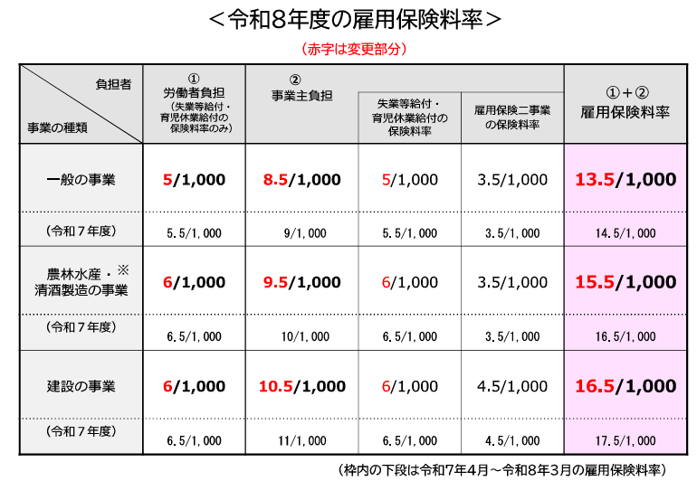 令和8(2026)年4月1日から雇用保険料率が変更になります。